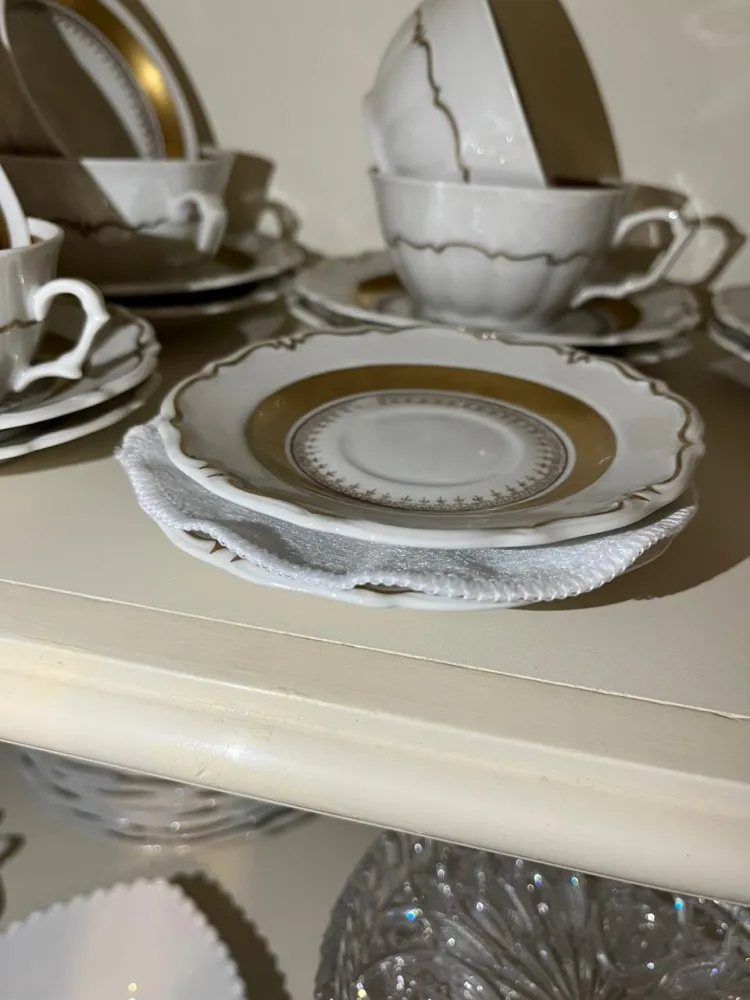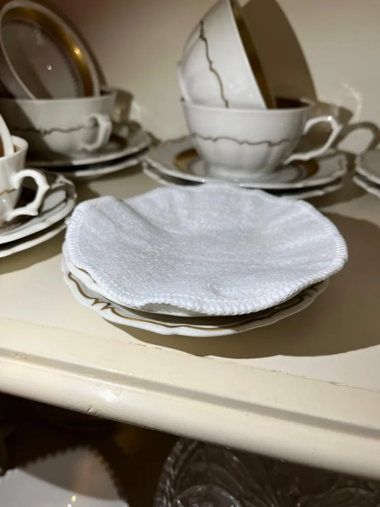 Kit de separadores de pratos de chá, contendo 6 unidades - tamanho de 17cm, confeccionados em feltro branco.